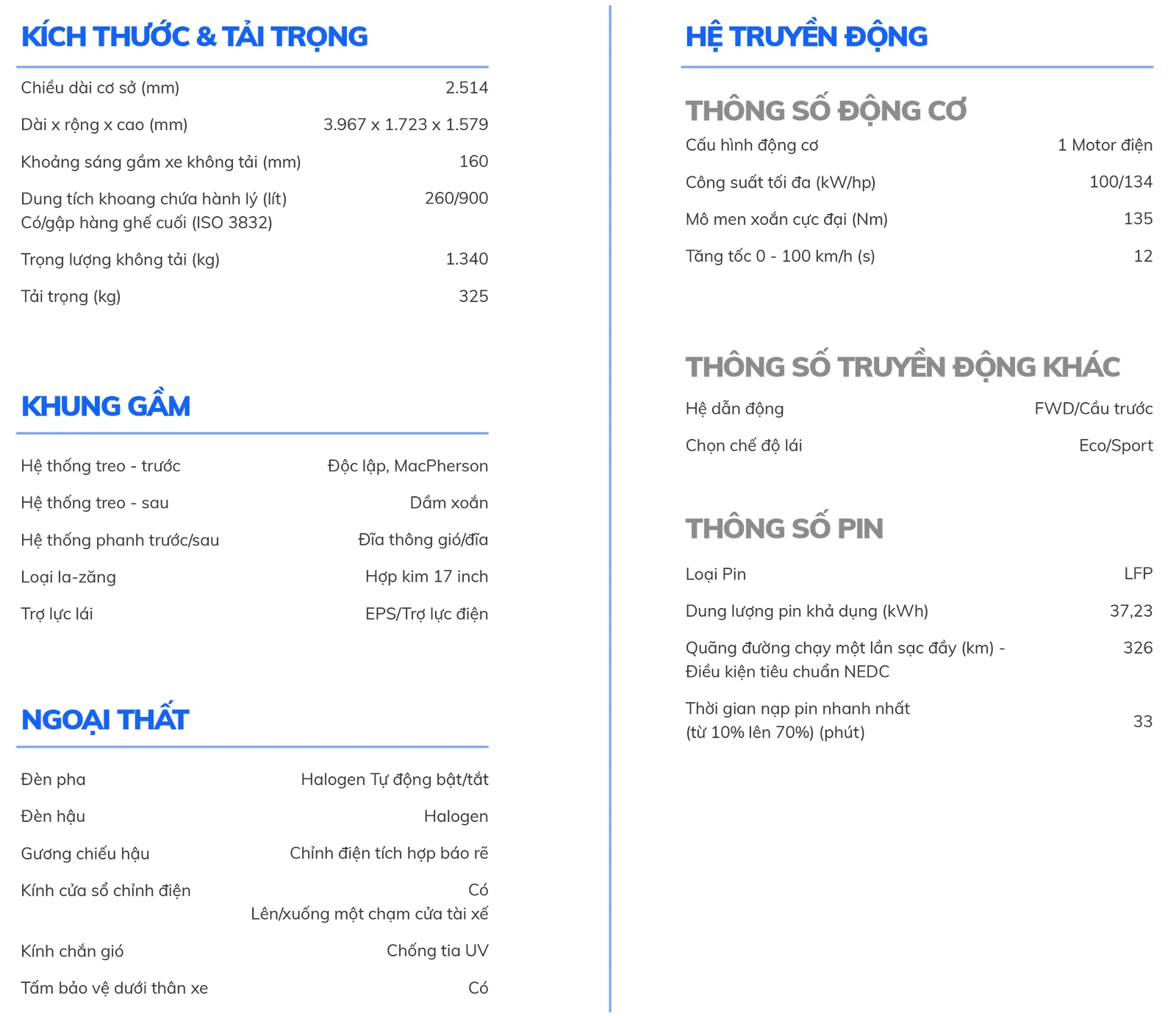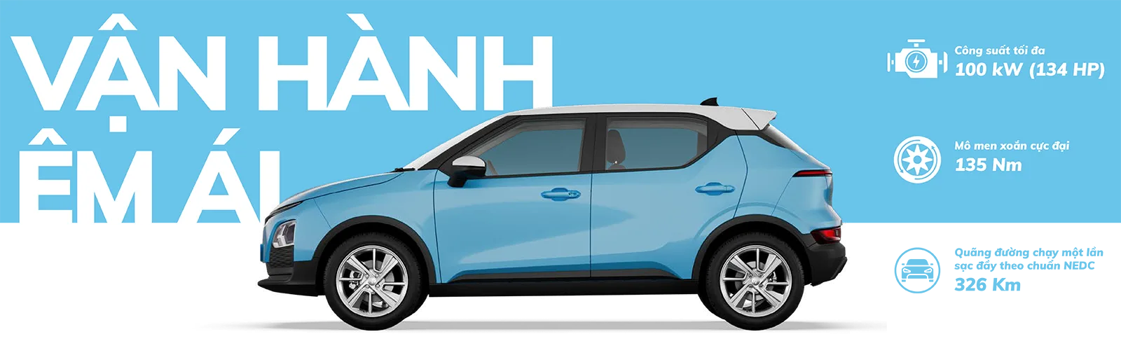- Quãng đường di chuyển (chuẩn NEDC)*: 326,4 km/lần sạc